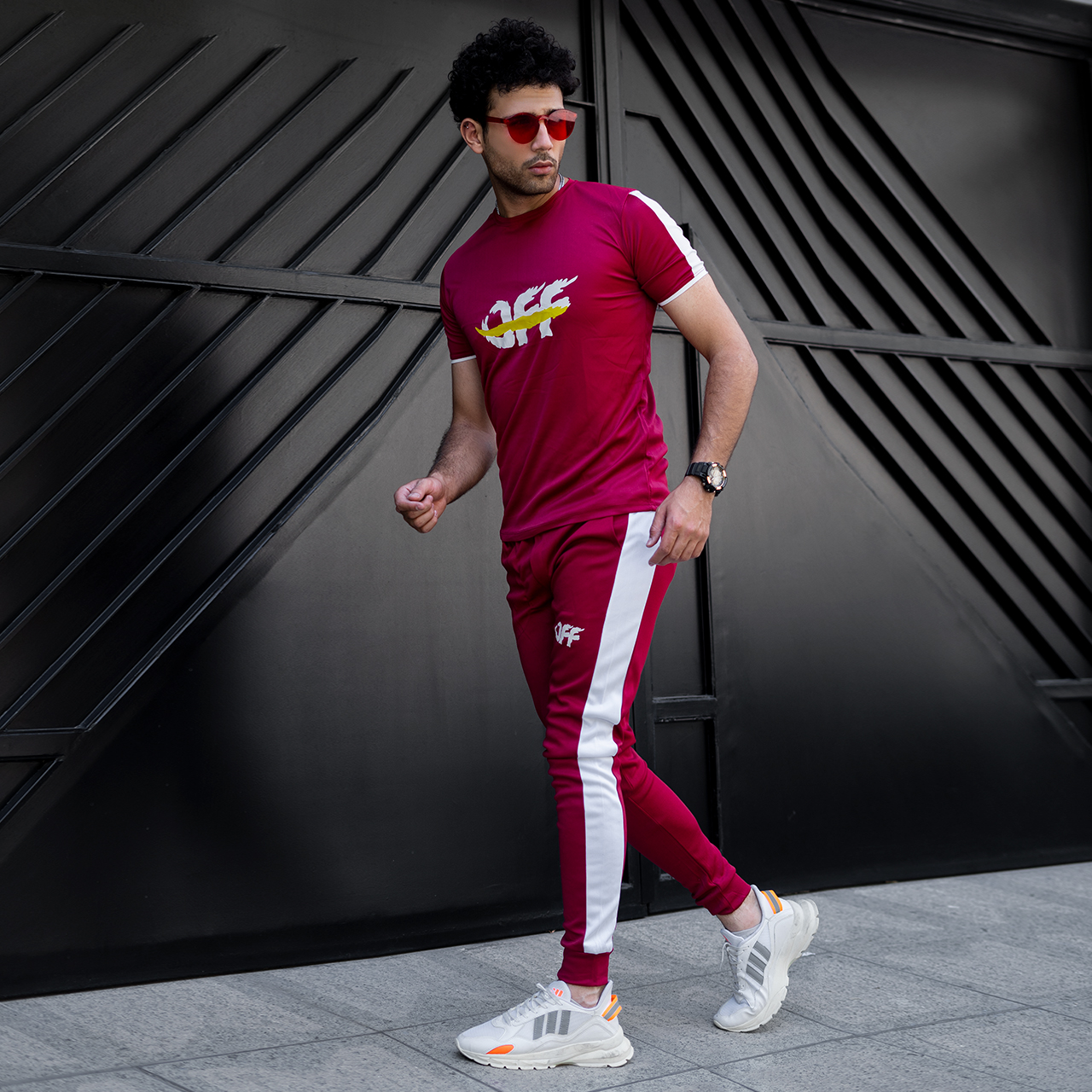 ست تیشرت شلوار off قرمز مردانه مدل O77